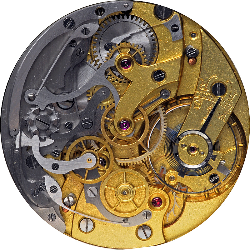 Dieses Werk stammt aus dem nebenstehend abgebildeten Chronographen, dessen Zifferblatt mit