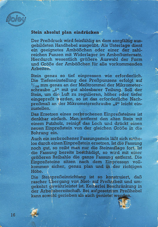 Technik Praxis - Bedienungsanleitung zur Boley Triebnietmaschine